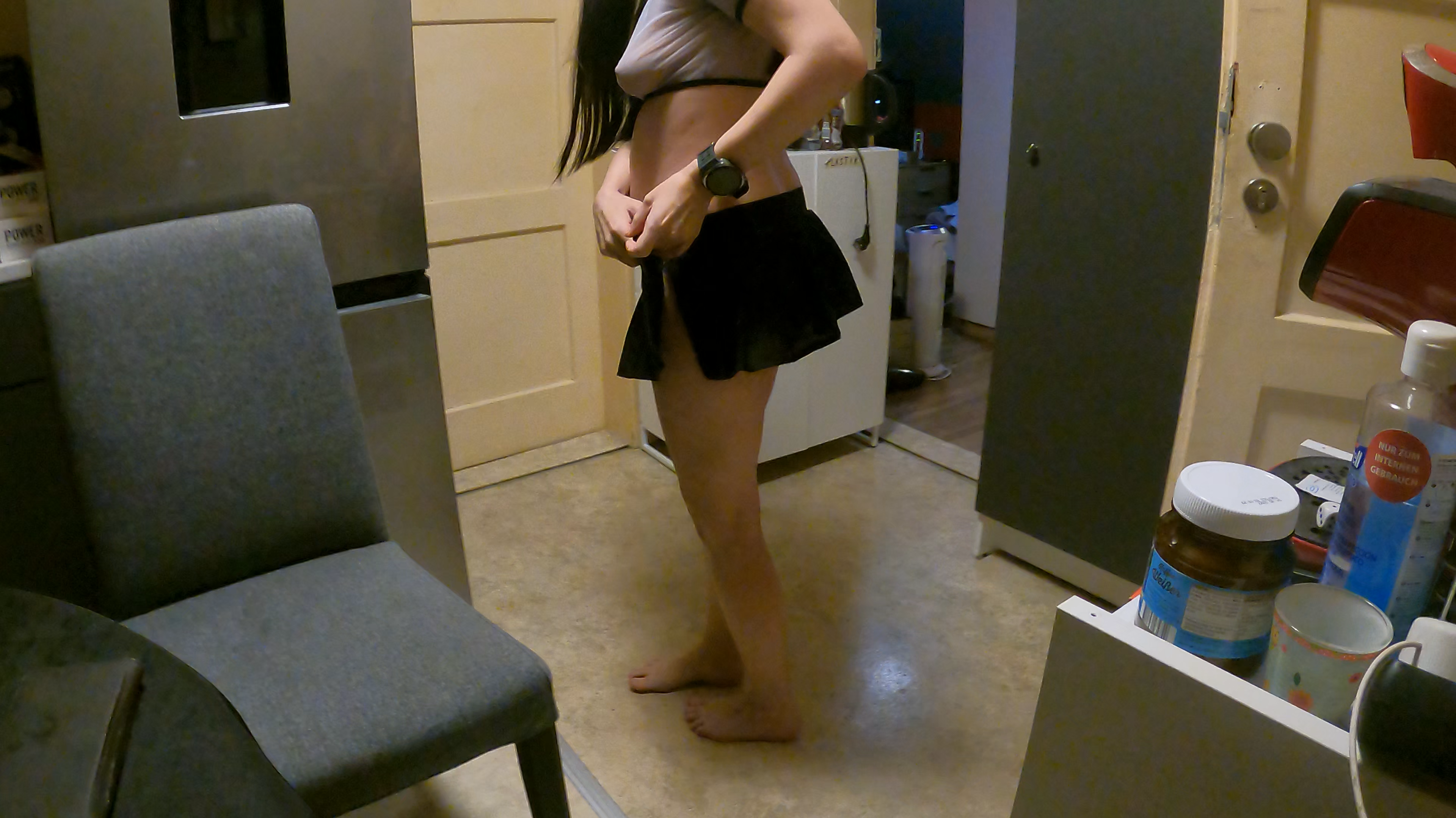 Klingeln an der Tür, kurze Vorstellung – ein Girl im knappen Outfit will „zum Herrn“. Natascha lässt sie rein, bleibt jedoch vor der Zwischentür stehen: „Erst zeigst du mir, dass es sich lohnt.“ Ein freches Lächeln, ein eleganter Kniefall – die Neue spielt mit Nähe, Blickkontakt und Tempo, nimmt Nataschas Prüfungsansage als Einladung und liefert ab: selbstsicher, hingebungsvoll, genau auf den Punkt. Die Spannung im Flur schraubt sich hoch, Nataschas Atem wird schneller, Hände verkrallen sich